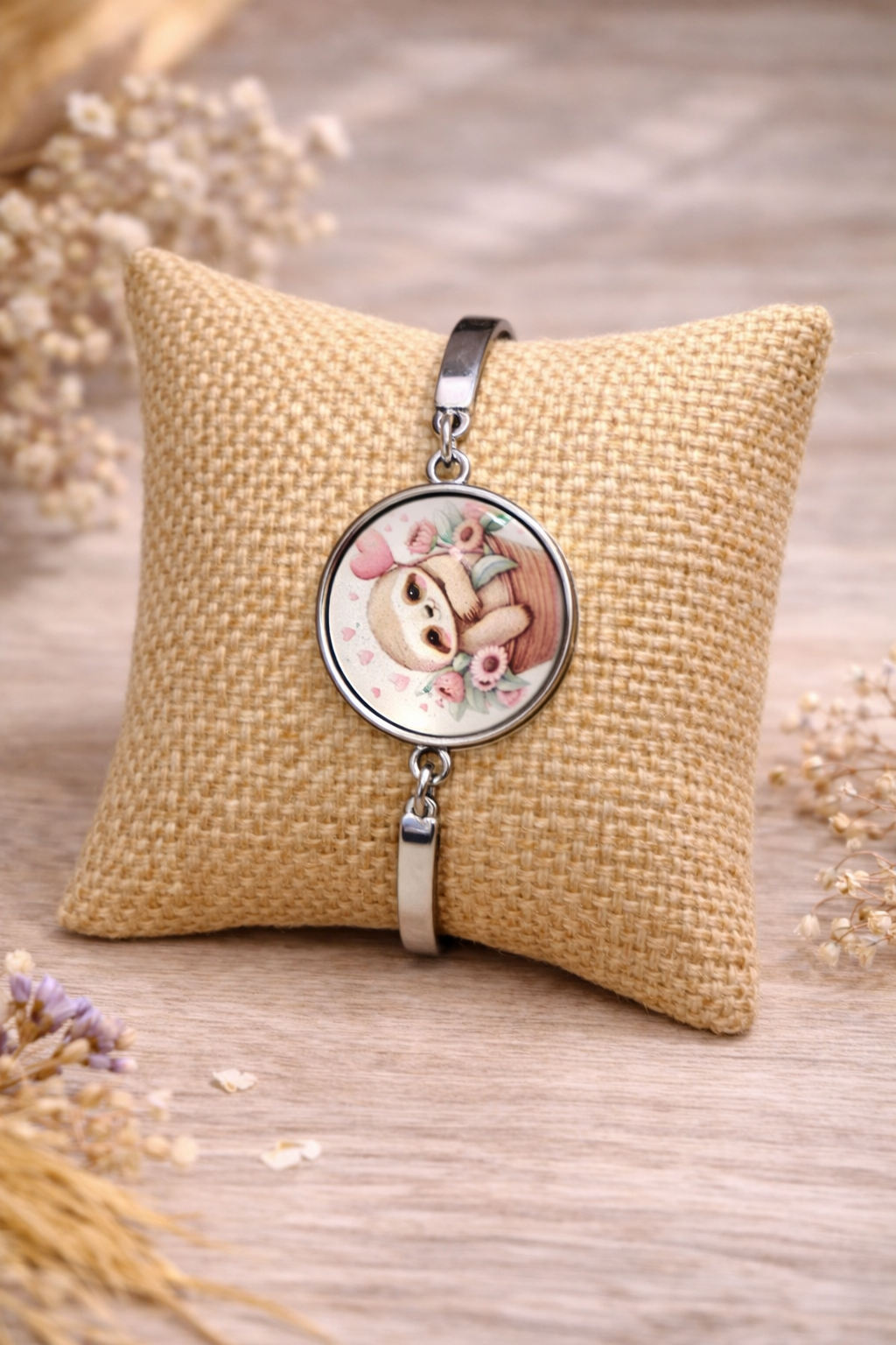 Chaque bracelet est imaginé pour apporter une touche de caractère, de douceur ou d’originalité selon le motif du cabochon, tout en restant facile à porter au quotidien.