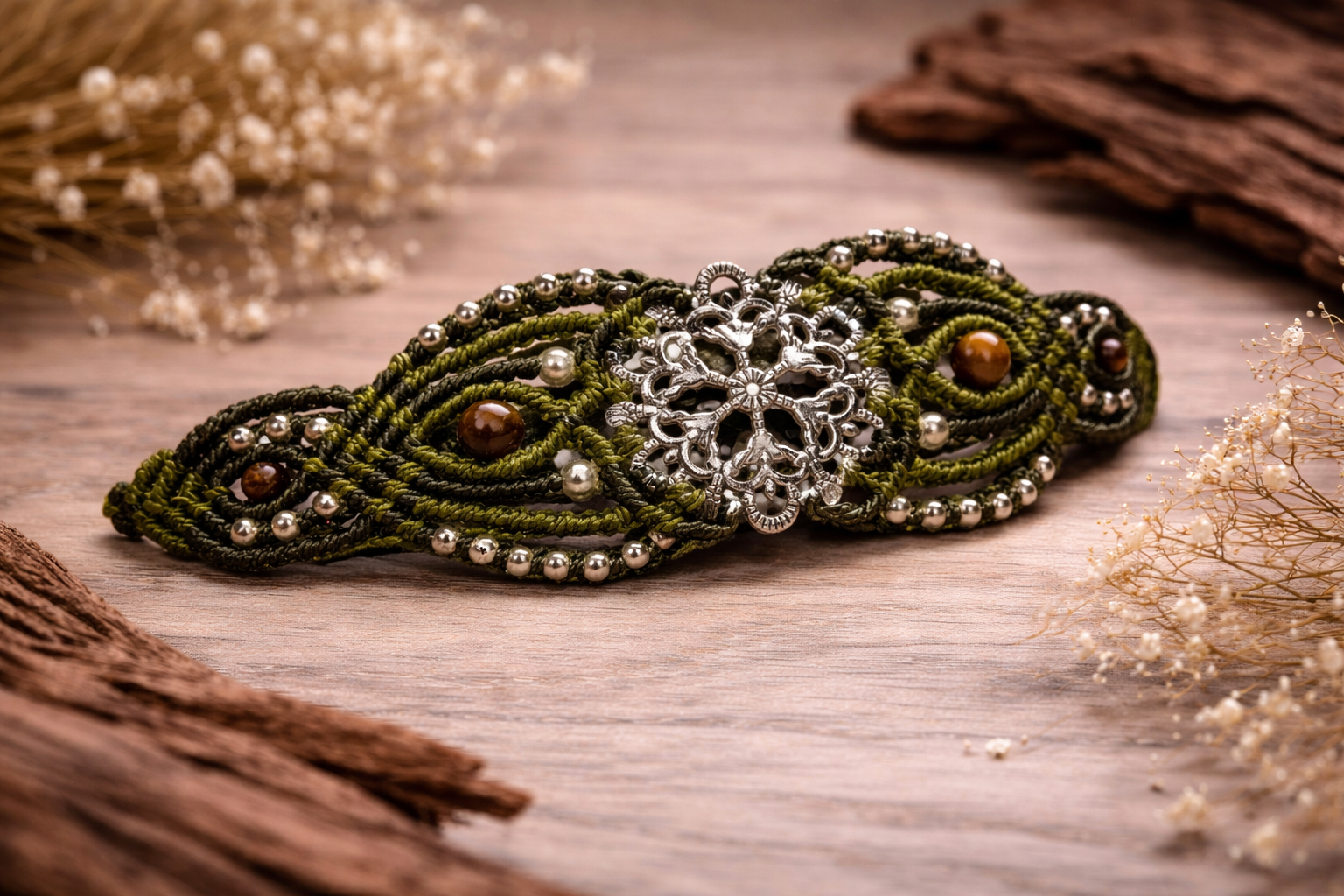 Ce bracelet en macramé est une création artisanale pensée comme un véritable bijou d’intention.