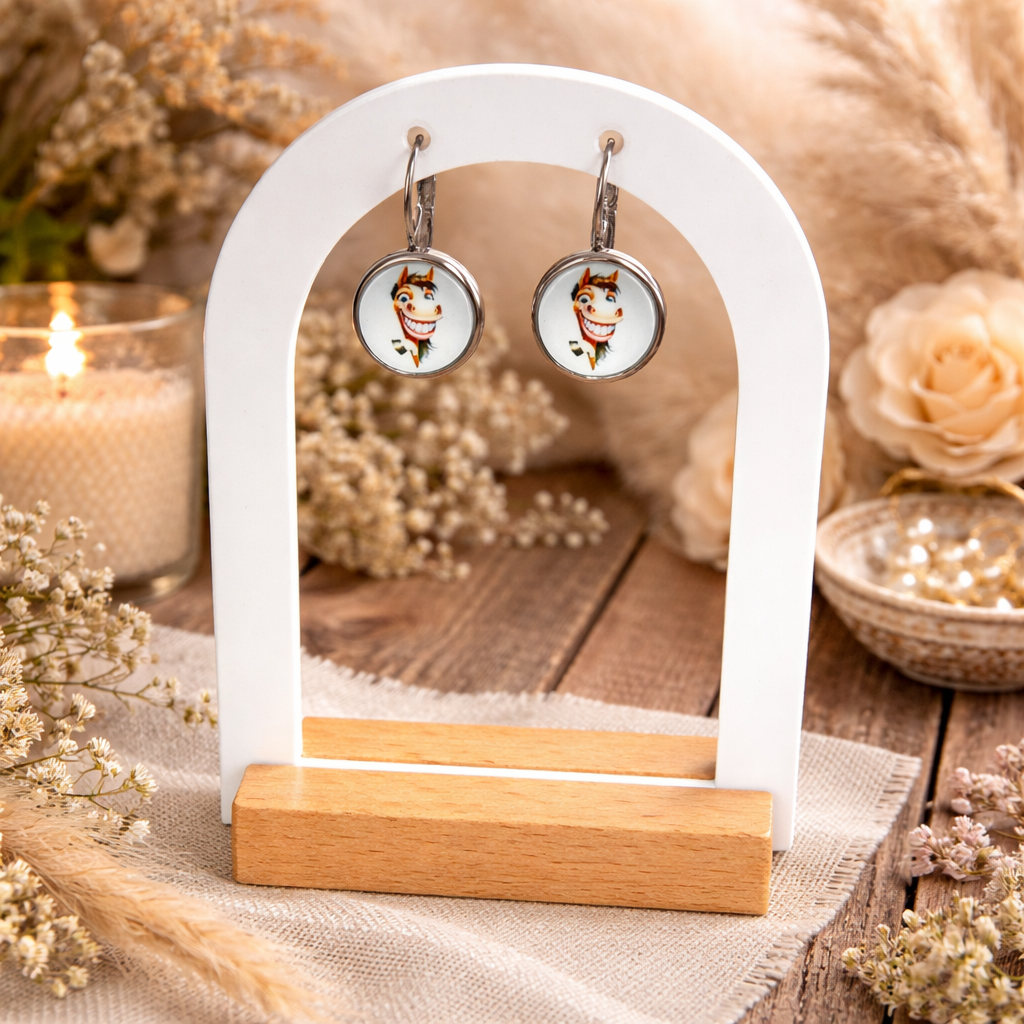 ✨ Boucles d’oreilles dormeuses – Cabochon illustré esprit bohème