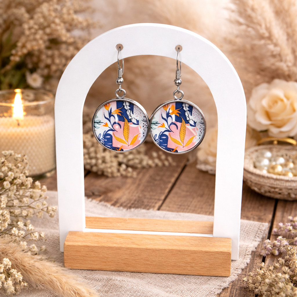 ✨ Boucles d’oreilles cabochon illustré – Motif végétal bohème