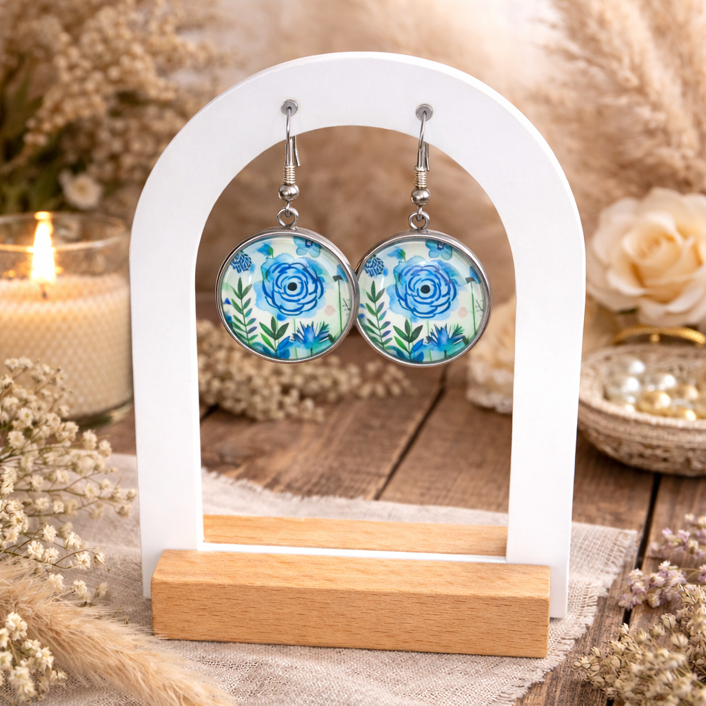 ✨ Boucles d’oreilles cabochon illustré – Motif végétal bohème