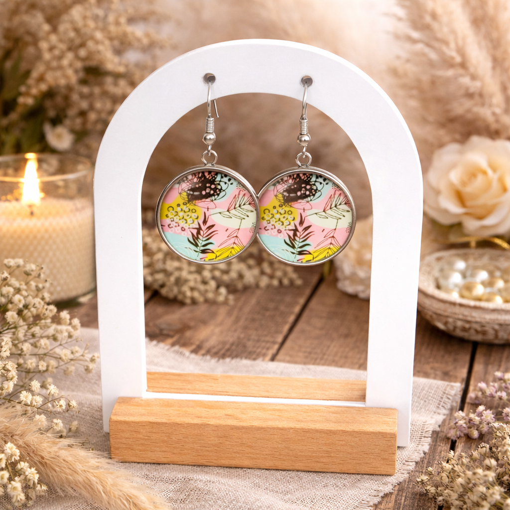 ✨ Boucles d’oreilles cabochon illustré – Motif végétal bohème