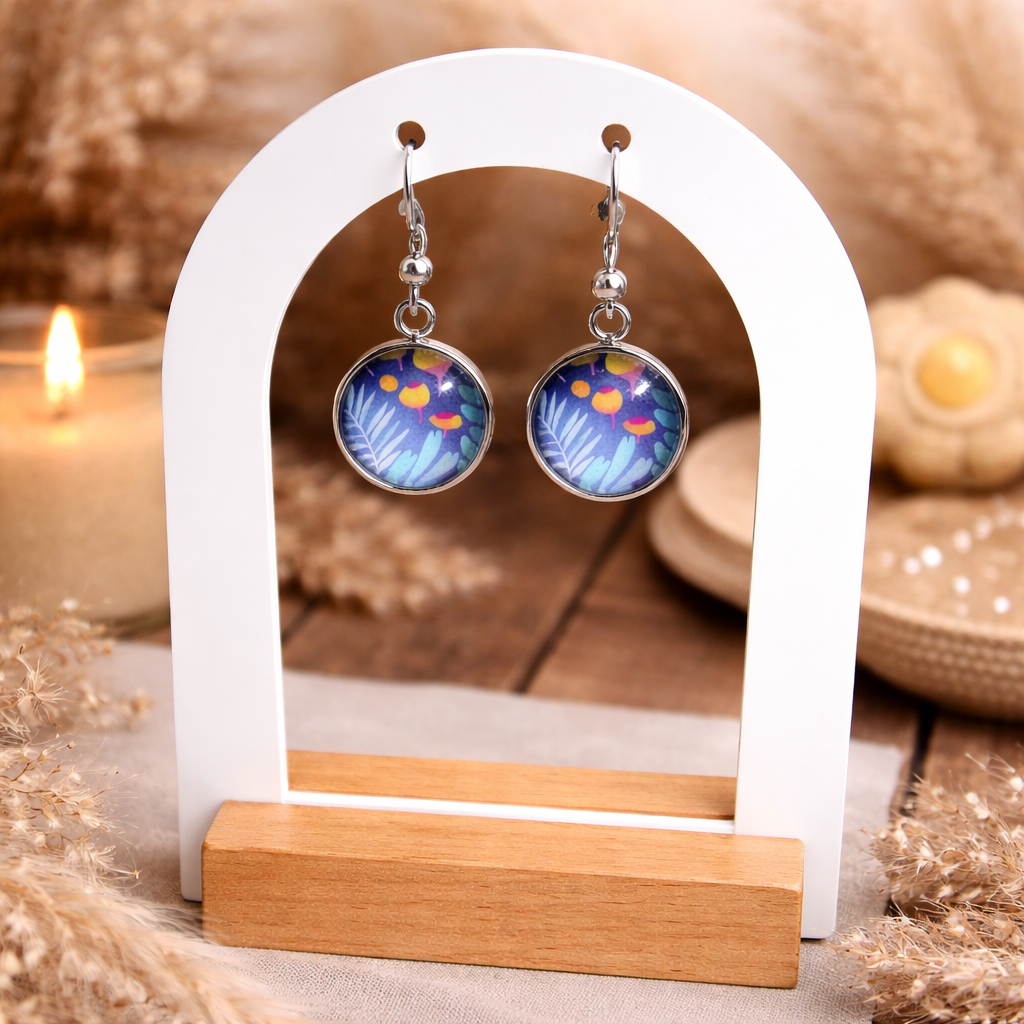 ✨ Boucles d’oreilles cabochon illustré – Motif végétal bohème