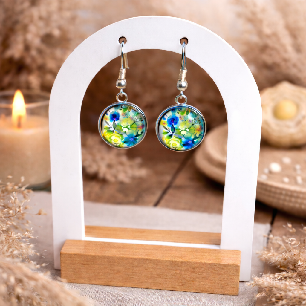 ✨ Boucles d’oreilles cabochon illustré – Motif végétal bohème
