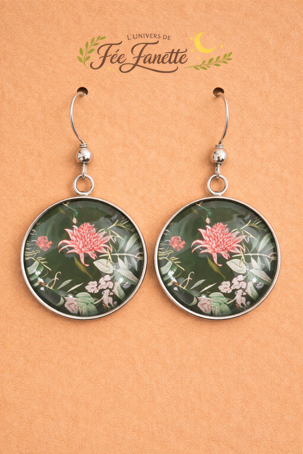 Boucles d’oreilles cabochon – Fleur exotique rouge