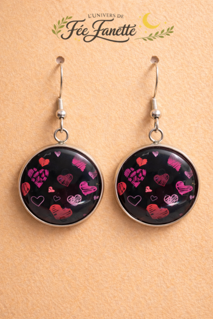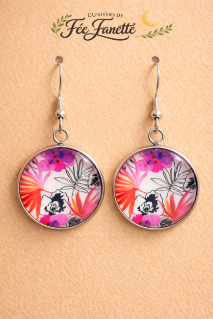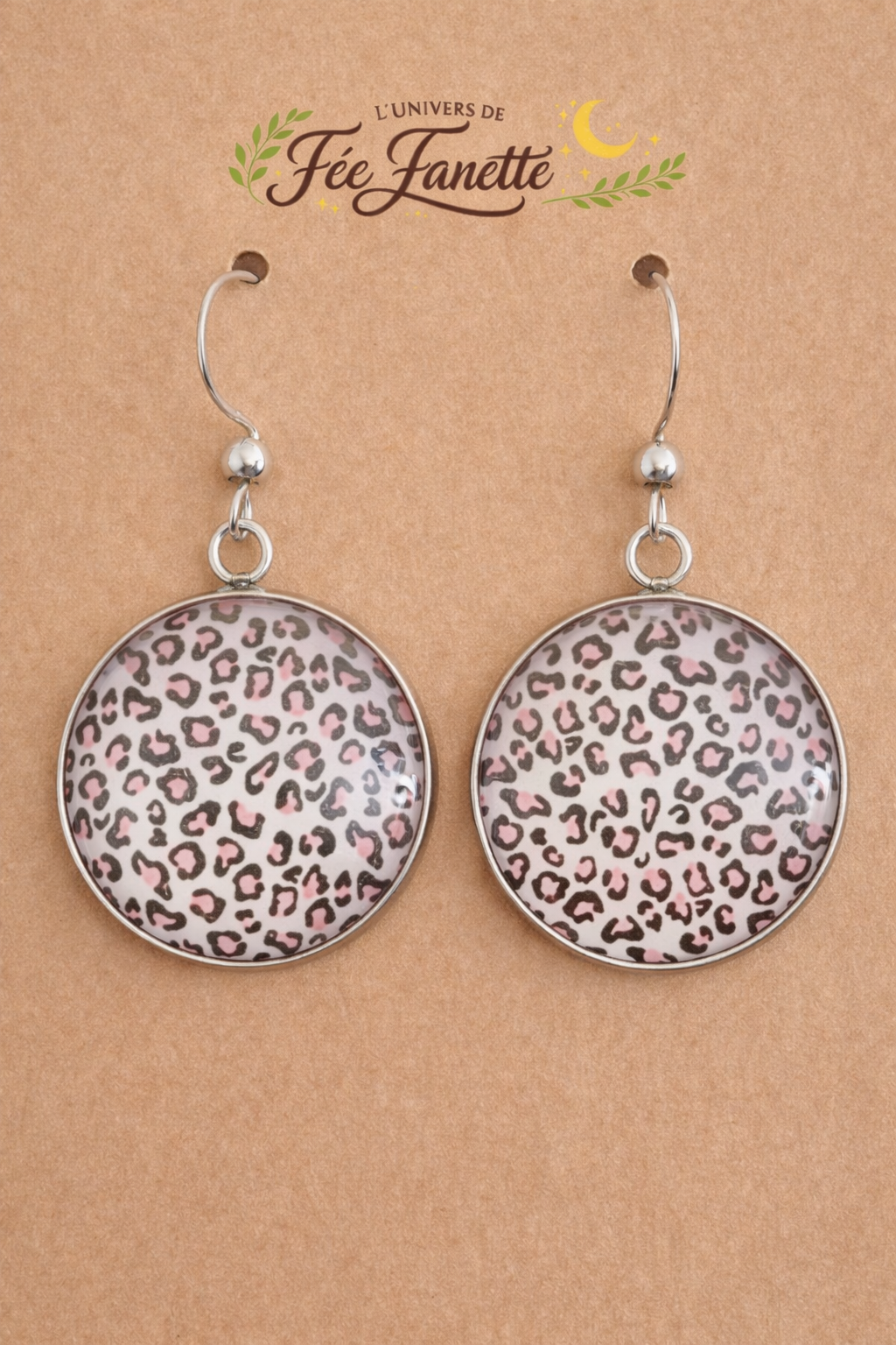 Boucles d’oreilles cabochon au motif léopard rose et noir, élégantes et modernes. Un bijou original qui apporte une touche sauvage et féminine à votre style.