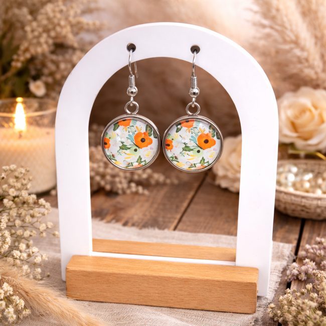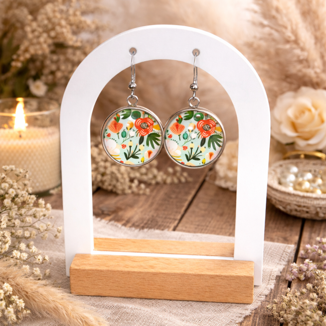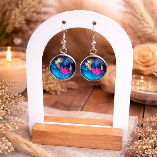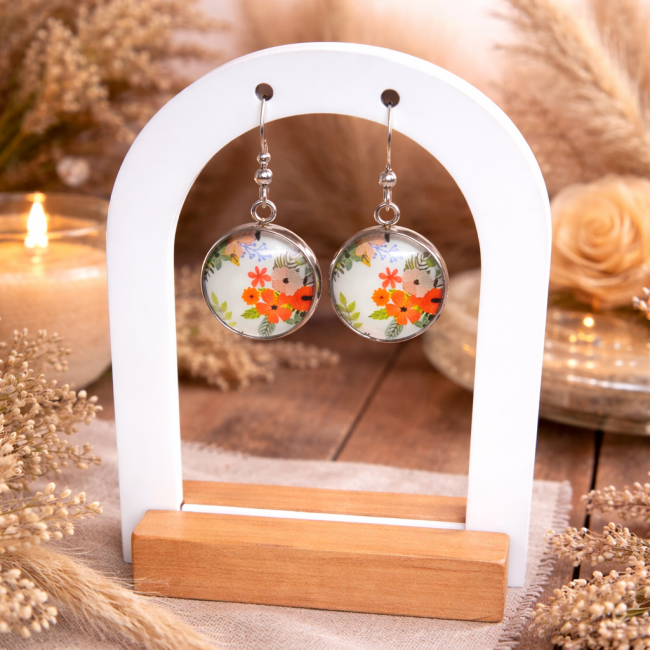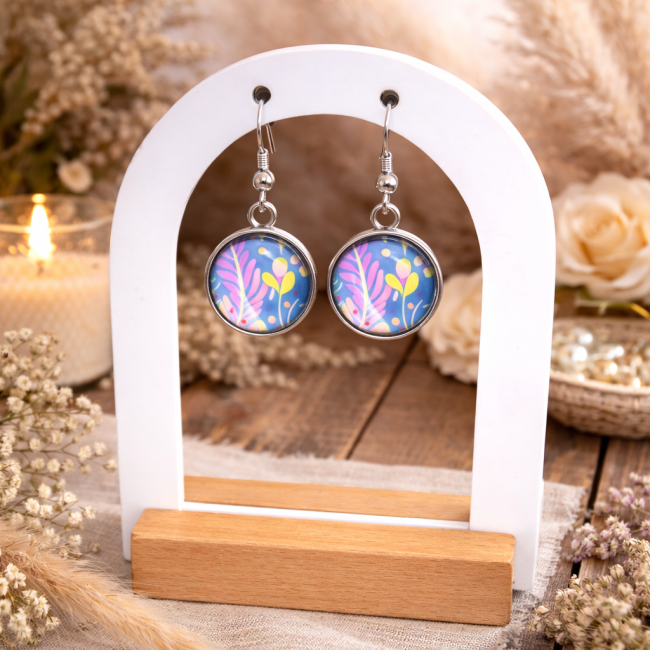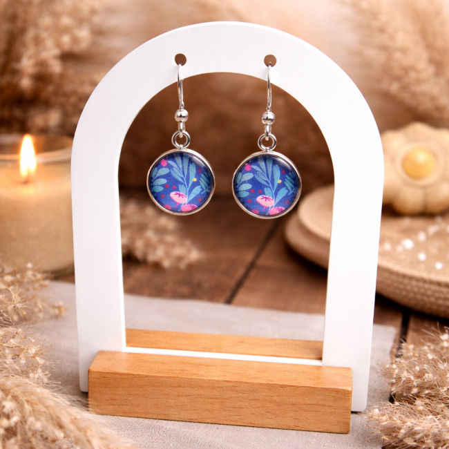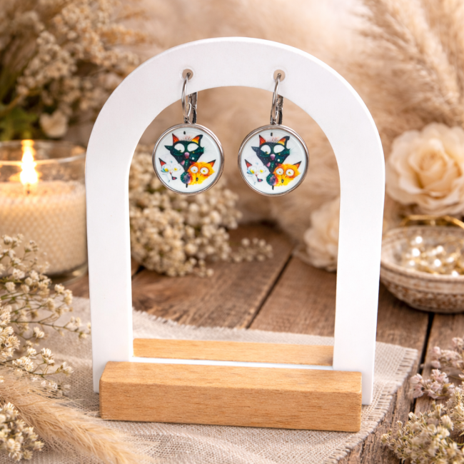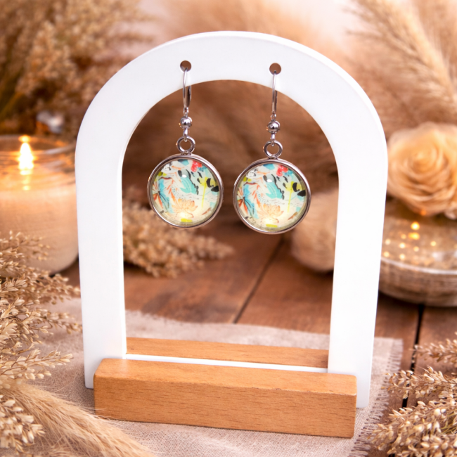 boucles d'oreilles dormeuse avec cabochon illustré 1